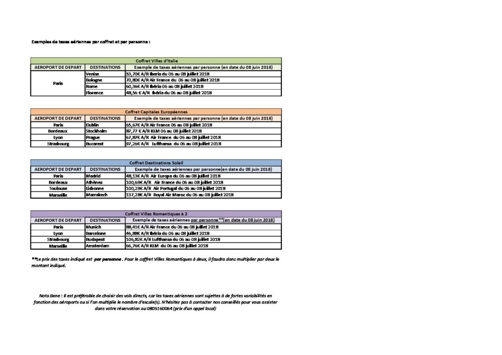 TABLEAU taxes aériennes 2018_ Juin 2018